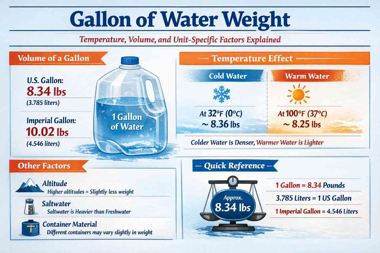 The question “how much does a gallon of water weigh” connects physical science with real-world usage. The standard answer—8.34 lbs—is context-sensitive, depending on temperature, measurement system, and purity. Precision in water weight supports engineering, medical, and environmental applications across industries.